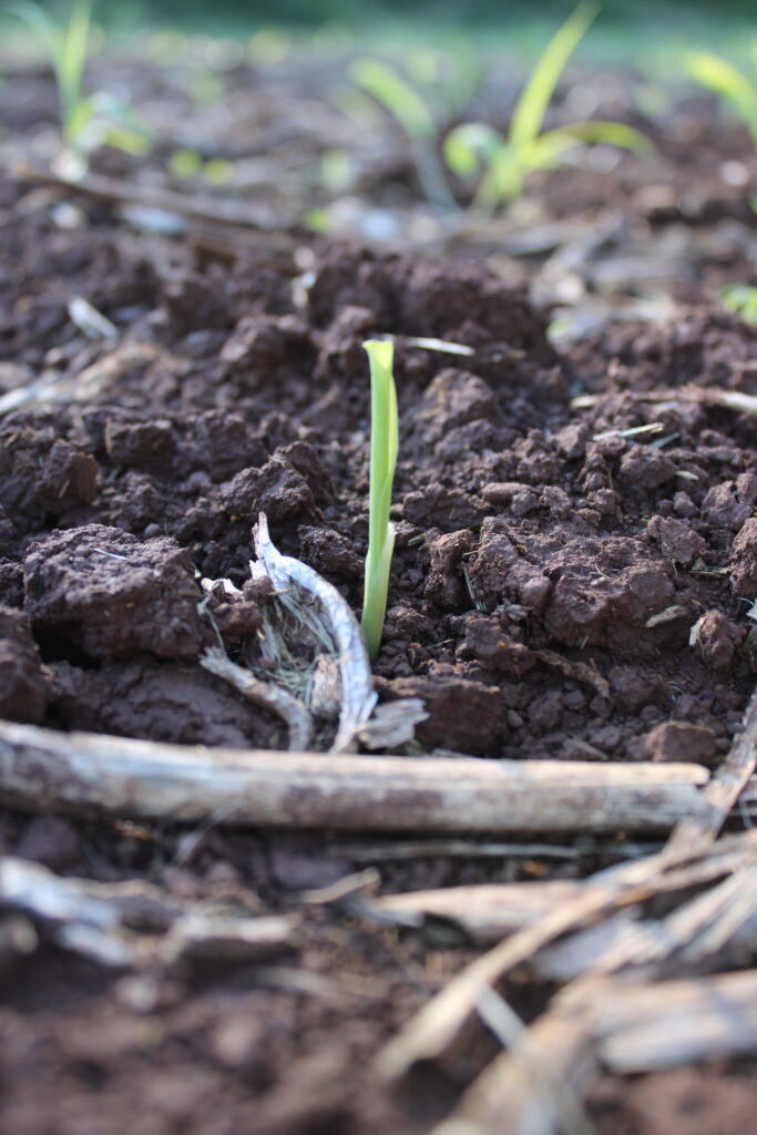 O técnico destaca que o percevejo consegue atacar o milho até a planta atingir cerca de 60 a 70 dias, período em que o caule ainda é macio e vulnerável. Por isso, o ideal é que o controle seja feito já na fase conhecida como “palito”, entre cinco e sete dias após o plantio, quando a planta começa a despontar do solo. “Há produtores mais avançados que fazem uma aplicação preventiva ainda antes do plantio e outra no palito. Essa é a estratégia mais completa, mas, pelo menos, uma aplicação na fase inicial já garante grande proteção”, reforça.