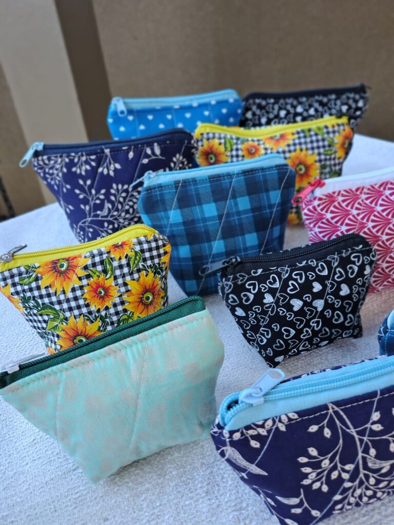 Segundo ela, a decisão foi motivada, principalmente, por questões de saúde. “Minha ansiedade estava pesando bastante. Então, resolvi transformar o artesanato em atividade principal. Foi uma escolha tanto pela saúde quanto pela realização pessoal.” Edina recorda que desde criança já se encantava pelo mundo das criações manuais. “Eu fazia roupinhas de boneca, gostava de inventar coisas. Minha mãe sempre fez crochê, mas não me identifiquei muito. Já o patchwork e outras técnicas me atraíam bastante. Durante a pandemia, ganhei minha primeira máquina de costura e comecei a produzir máscaras, o que me incentivou a investir em novas máquinas e ampliar os serviços.”