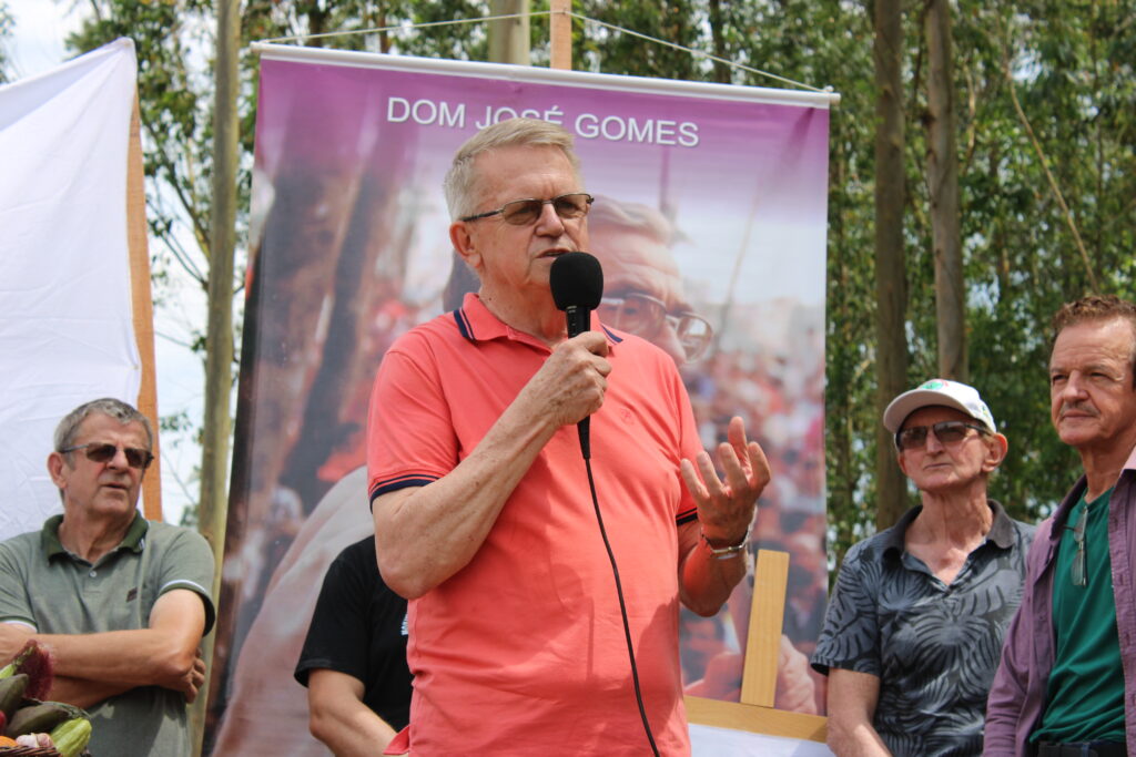 A celebração iniciou com a acolhida feita por Pedro Eloir Nelchior, integrante da coordenação do MAB, que destacou a importância de relembrar a história e manter viva a luta que começou ainda nos anos 1980, com a antiga Comissão Regional dos Atingidos por Barragens (CRAB). “Hoje celebramos a primeira cruz colocada aqui na Linha Catres, em 13 de outubro de 1985. Foi o início de uma resistência que impediu o avanço dos estudos do projeto da hidrelétrica da Eletrosul. Com o apoio de Dom José Gomes, das igrejas, sindicatos e da população, o povo se uniu e disse não à destruição das suas terras e das suas comunidades”, recordou Nelchior.