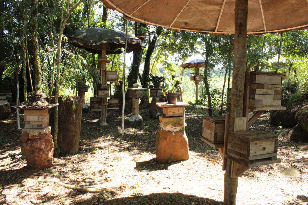 Por residir próximo a rodovia, o produtor mudou as colmeias para um lugar mais tranquilo, no interior, onde aproveitou pedras e outras estruturas da propriedade que servem de suporte para as caixas, e inclusive embelezam o local. Além da venda do mel, para uma associação de Curitiba, Paraná, Gelso também comercializa o produto direto ao consumidor e vende as colmeias para quem quer começar ou ampliar a atividade.