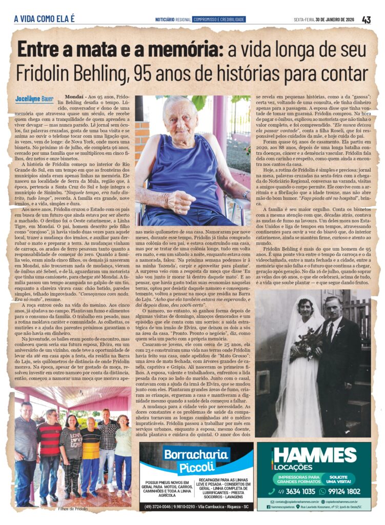 Entre a mata e a memória: a vida longa de seu Fridolin Behling, 95 anos de histórias para contar