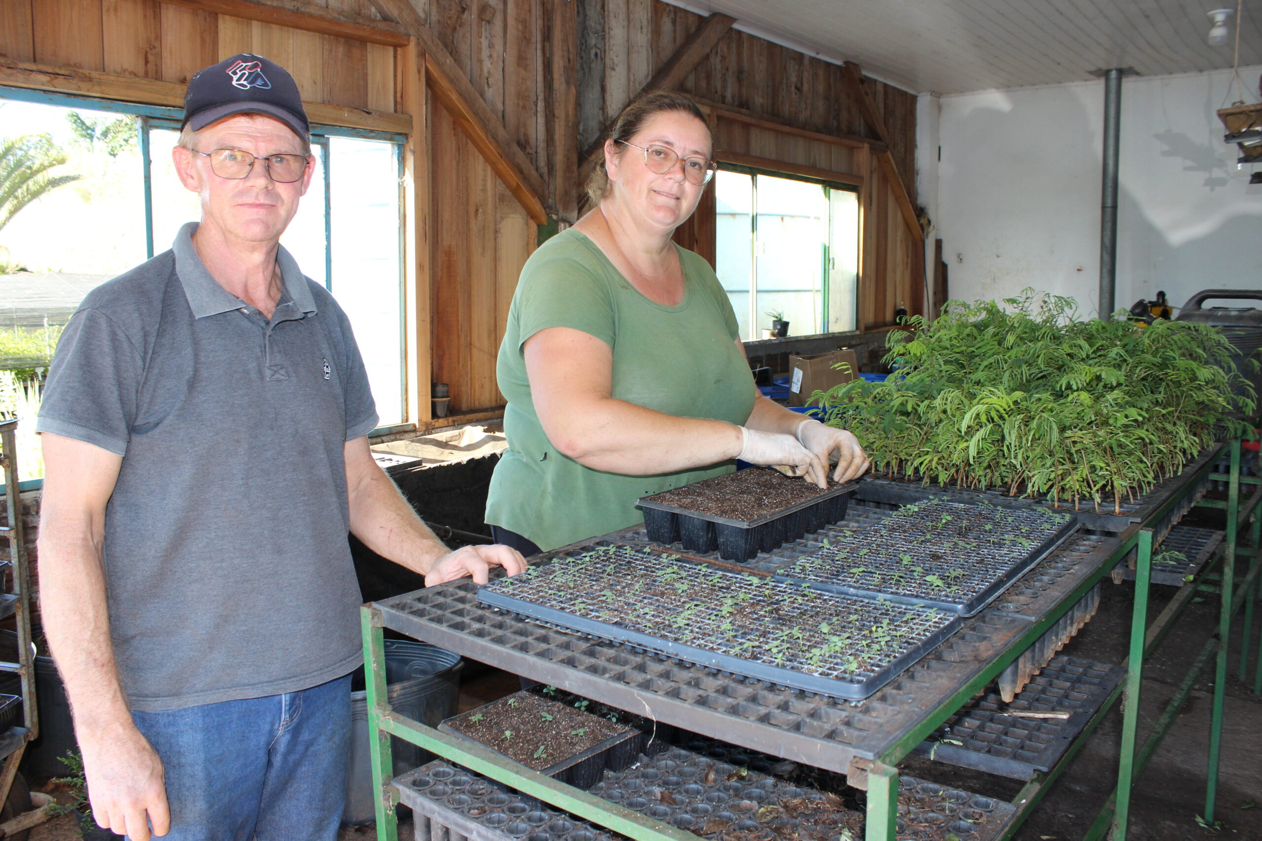 São João do Oeste – O viveirista, Inácio Schuh, trabalha no viveiro desde a sua implantação, inicialmente na comunidade de Beato Roque, em 1993. Exerce a função há 33 anos, e acompanhou todas as mudanças e avanços deste espaço, que em 1999 foi transferido para a cidade. No início, Inácio recorda que o viveiro surgiu e se manteve pela demanda que havia na época por mudas para reflorestamento de uva japonesa, pinus e eucalipto. Em certos períodos a produção no viveiro chegou em 300 a 500 mil mudas de eucalipto por ano. Havia inclusive incentivos governamentais para o reflorestamento na época, principalmente para toras e madeira em metro.